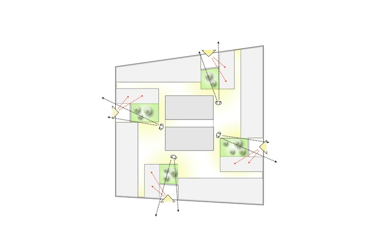 • The quality of the void spaces is affected by their location. Instead of public circulation space, these voids offer space for small meetings or personal reflection.