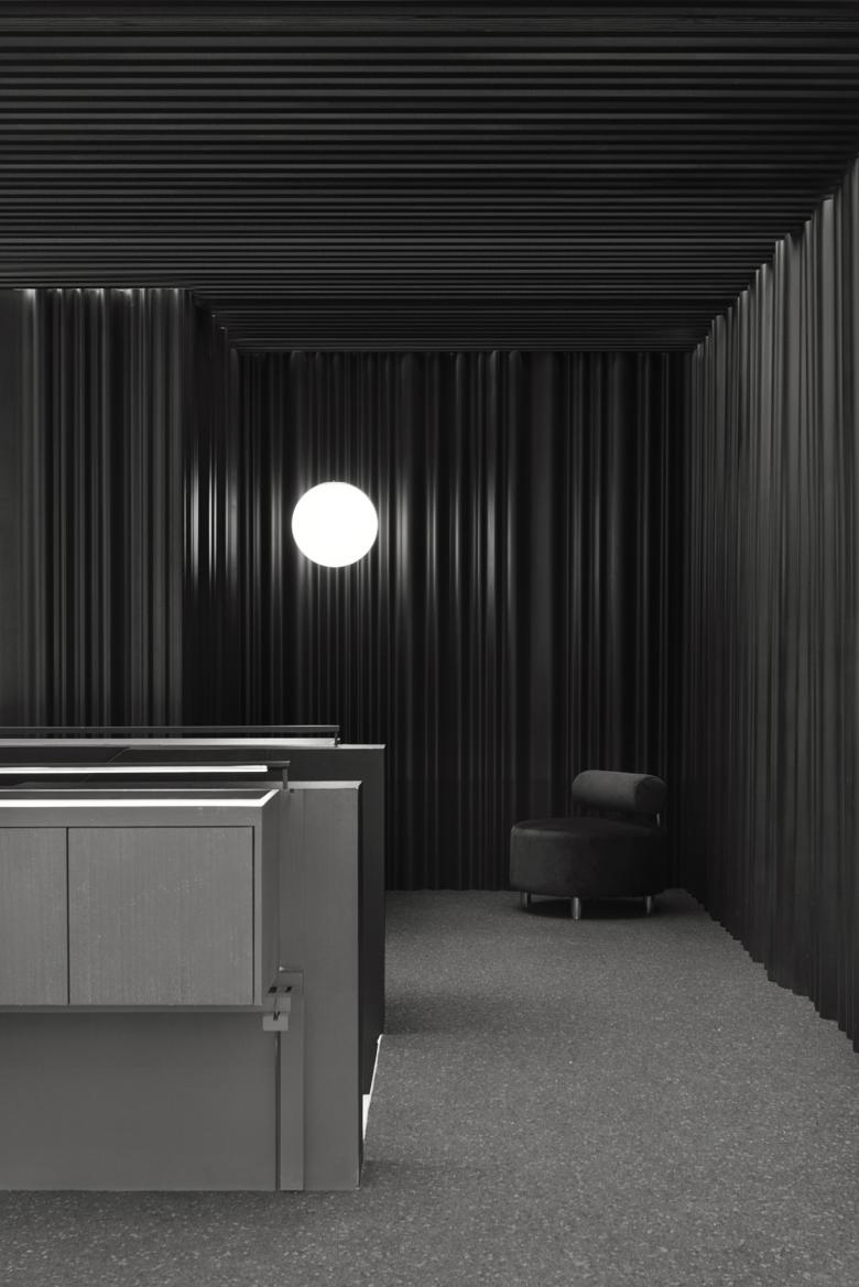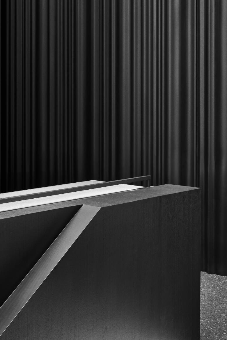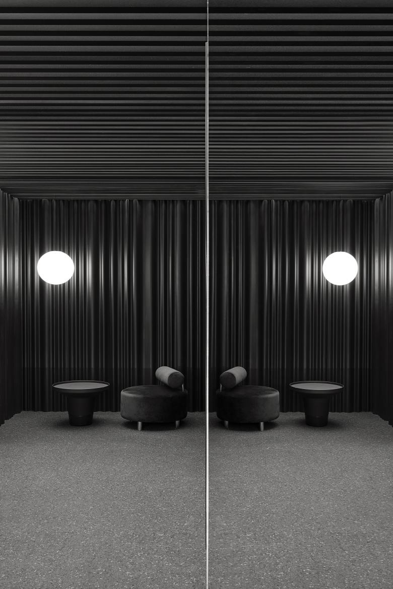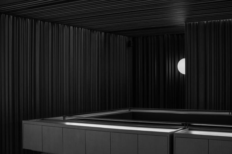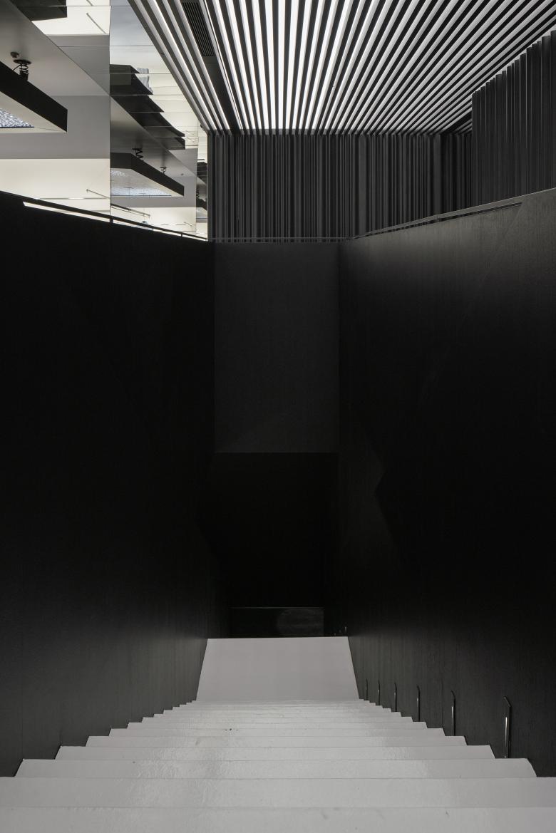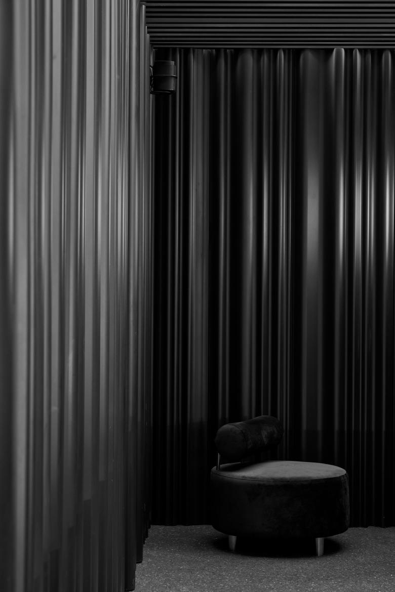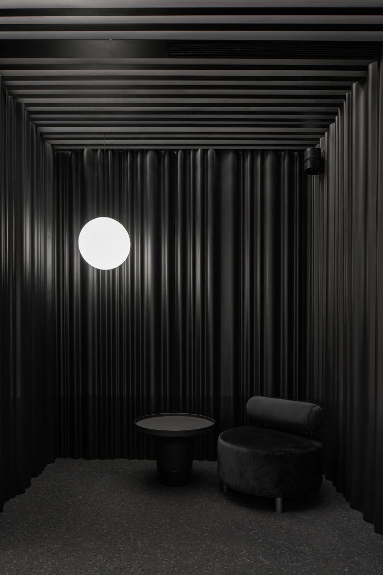 The second floor is a more pure and classy black spatial realm. The design follows the storyline of "Stage", with the wavy black interior surfaces recalling stage curtains.
