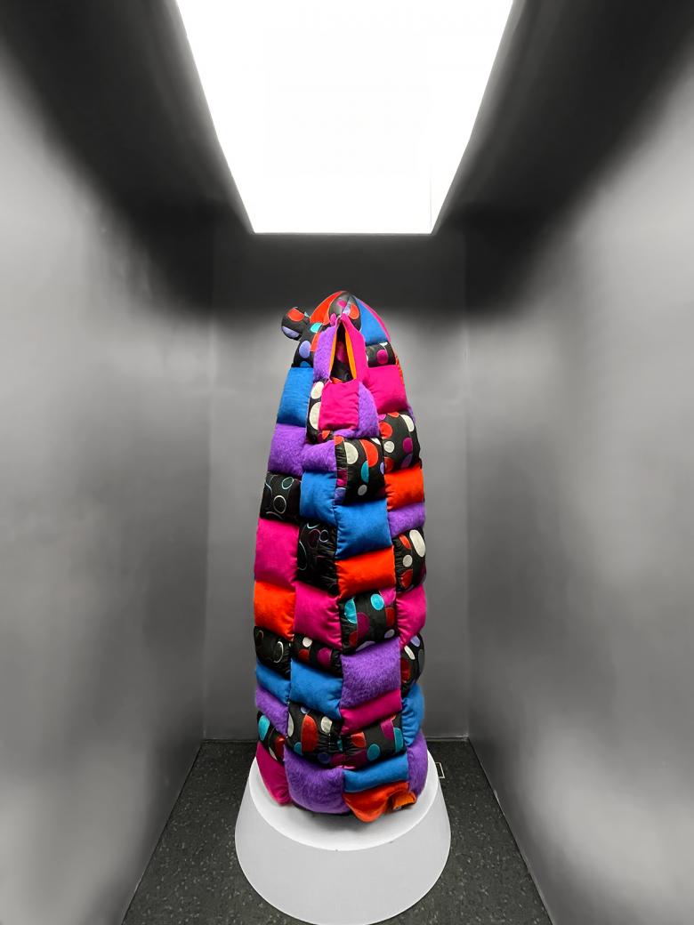 Colored objects in the space are especially clear and bright. Conspicuous and dramatic visual effects are created as people wearing clothes with different colors walk in the space.