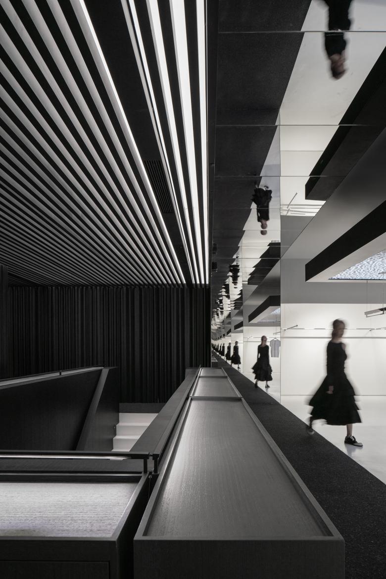 (SO)What upholds the unrestrained and independent character of contemporary females, which indicates the brand's core values. In response, Various Associates created a cool, fashionable, and tasteful spatial atmosphere through the strong contrast of white and black hues and the giant variable screens, to interpret the brand's original intention.