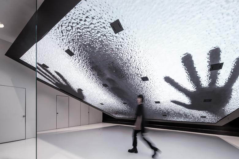 The giant rotating screen is like the stage background of a play that can change freely. Randomly-switched dynamic elements and multiple angles of inclination are combined, to create a distinctive intuitive experience in the space.