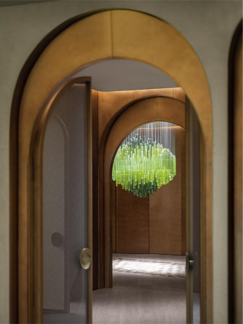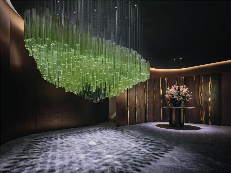 "Blossom House Shanghai On The Bund" is located in the most symbolic area in Shanghai, nearby Yuyuan Garden, surrounded by traditional Shanghai alleys but is just a block away from the bustling ‘The Bund’. "Blossom House Shanghai On The Bund" turns on the old building to become the standing out a spot among this area. With its name “Blossom”, "flower" is the key language in the design. The entrance door head looks like a petal curve, welcoming people to come inside. We try to touch the admiration of urbanite by nature sense. Then the sound is made by the breeze through the glass bamboo, just like the wind chimes, to remind you of the taste of nature. The tone of brown color in the whole space comes from bronze, it is inspired by the history of Shanghai's unique city mark. From bright to dark, the sense of visual also brings relaxation and calm.