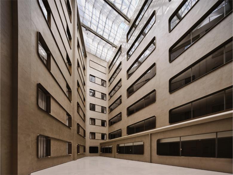 The terrace of the original building used to be unused, we activate this space and turned it into the sky garden. The courtyard which in the center of the 8 floors, surrounded by the guest rooms, the circulation turns on the courtyard becomes a flexible using space, connected with the library, active the vitality of the hotel.