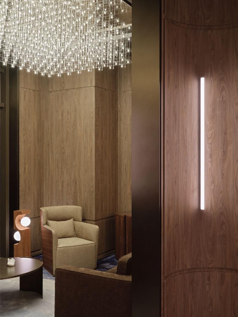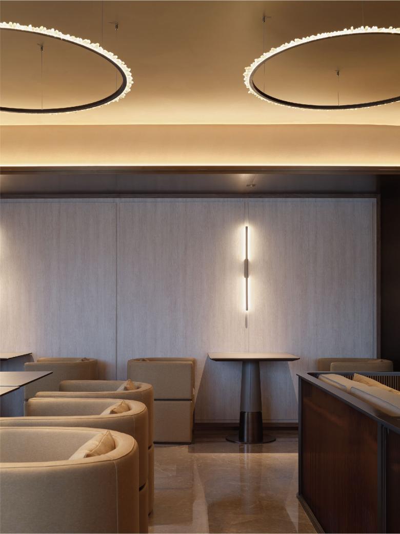 Lighting guides the guests into the hotel, transforming through different objects and spaces, which instantly release guests from the pressure of busy life.