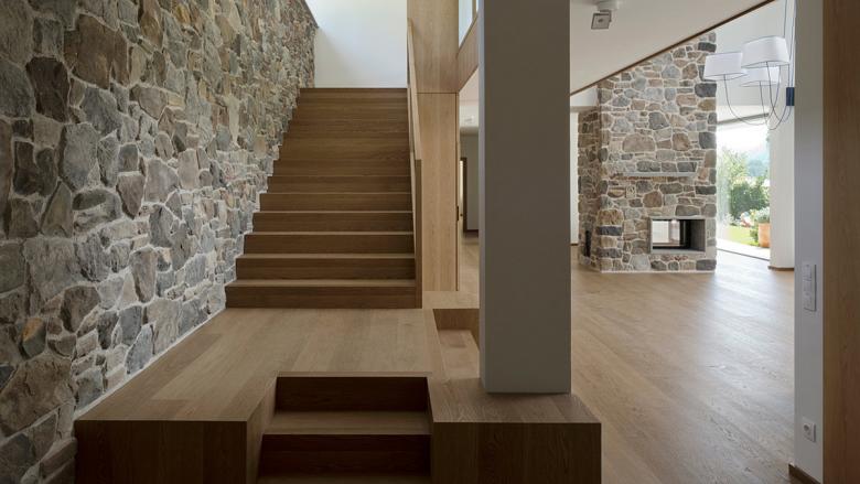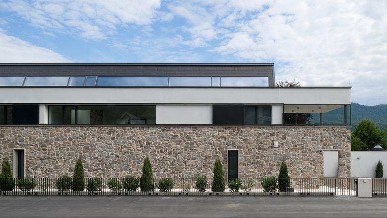 Die Kubatur basiert auf Anforderungen des Geländes und des Gebäudes gleichermaßen: