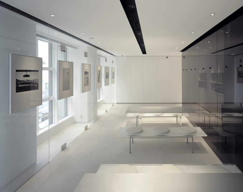 The showroom and the main stairway of the space are arranged parallel to the façade of the first floor, which is composed of highly transparent glass. For the gallery on the second floor, translucent glass printed with a dot pattern is hung parallel to the façade to control the view from inside. Photographs on display can be installed on this translucent surface, and the result is an exhibition that floats against a background where you could see and feel the city of Tokyo itself, showcasing the city beyond in a manner that recalls the 35mm “documentary” photographic style for which Leica is famous. You may say that photographic “reality” is layered on the “real city” of Tokyo.