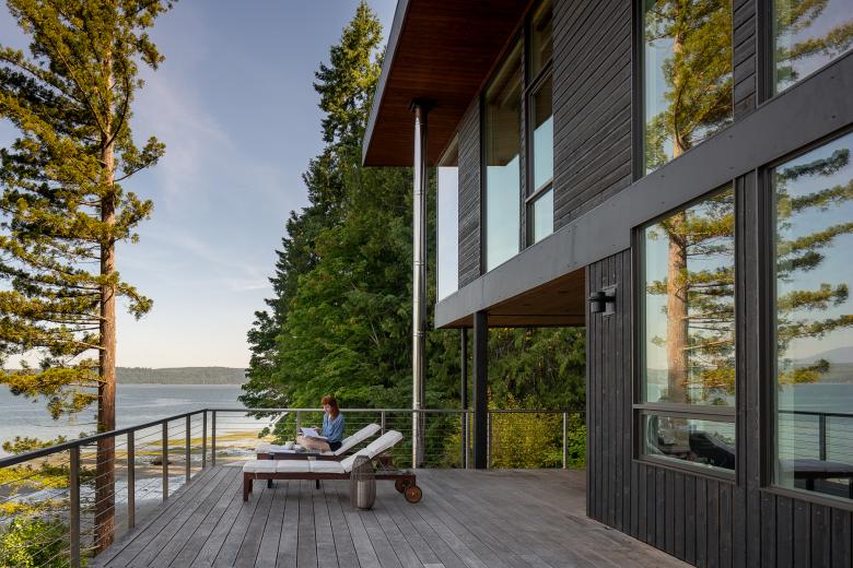 Native plantings and drought tolerant species were brought in to mitigate site disturbance and increase the ecological function of the site. The architects wanted the site preservation to extend beyond the footprint and into the materials of the building itself. Local cedar, quintessential to a northwest house, wears naturally with the wet and dry seasons. Stainless steel and concrete provide a maritime accent to the wood materials. Through the use of naturally weathering materials, the life of the building was extended while allowing ease of maintenance for the users.