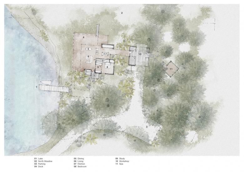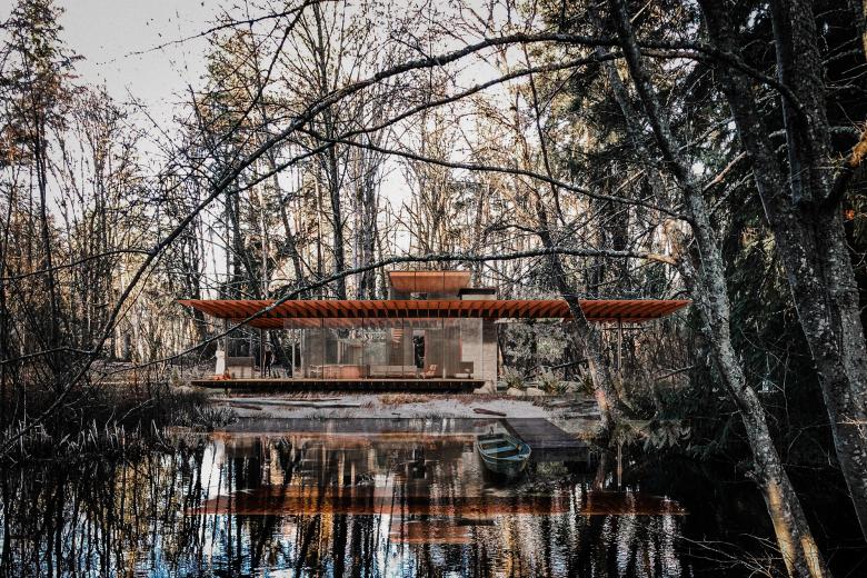 Currently under construction, Whispering Firs is a new residence carefully placed within a mature fir tree grove and between several wetland boundaries. Working with the Vashon Land Trust, the small footprint seeks to protect the land and protect natural ecosystems. Designed by Wittman Estes.