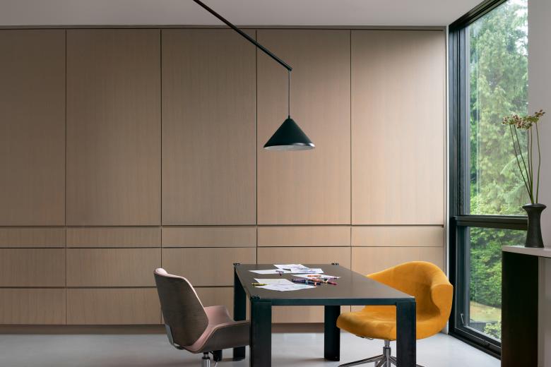 “The house uses two major program zones to shape layers of privacy and community,” Matt says that were “inspired by an ancient Chinese garden design principle known as ‘Big Hide.’” The communal spaces open up in the center of the house while the private ones are situated at the front of the house on two levels. Hidden in the private areas, the upper floor is arranged around a craft and teaching space for the family’s three children. In the communal spaces, the house opens up to the lounge and kitchen, and then onto the main living and dining. These public areas are arranged around the garden courtyard, with open corner doors that connect all the spaces together. Through design rooted in courtyards, transitional program zones, and borrowed views, the Yo-Ju Courtyard House aims create a new model for single-family housing.