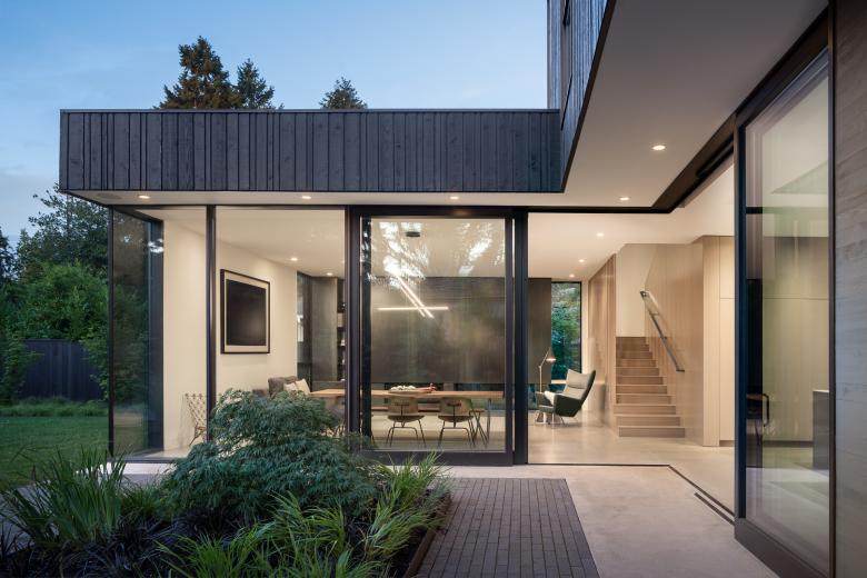 What happens to the suburban single-family home as cities become dense and privacy becomes limited? It must look inward. Through a series of thresholds from opaque to transparent, Yo-Ju Courtyard House, which means “secluded living” in Mandarin Chinese, embraces the future of suburban density by establishing a private experience despite being adjacent to a busy arterial street in the Clyde Hill neighborhood of Bellevue.