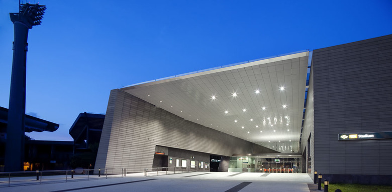 Stadium MRT Station was commissioned through the Marina Line Architectural Design Competition jointly organized by the Singapore Land Transport Authority and the Singapore Institute of Architects. The open, anonymous international competition, requiring no track record is acknowledged by the industry as one of the best run competitions held in Singapore to date. The Land Transport Authority continued their commitment to design throughout the design development and construction phases.
