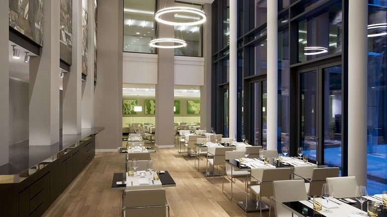 A lounge restaurant is integrated in the centre of an open atrium for up to 120 people and a cool and intimate cocktail bar, named TWIST, on the top floor of the building offers spectacular views overlooking the famous 'Frauenkirche'. A Spa offering a range of relaxing treatments is situated in the basement.