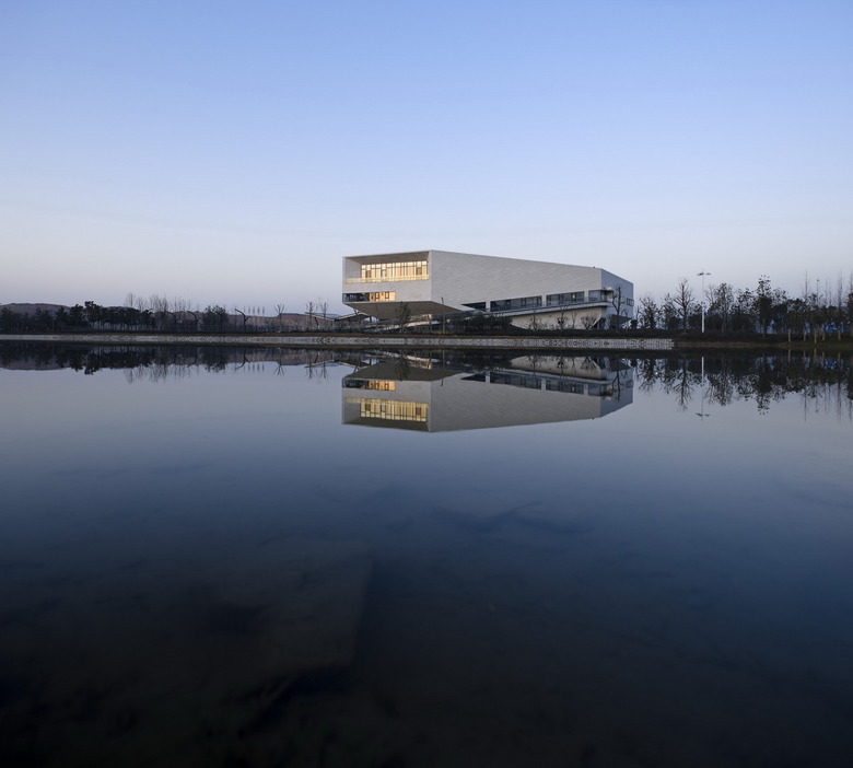 As the central piece of architecture for the Guanggu Bio-lake campus, this reception center houses exhibition space, conference rooms and administration offices. The building sits between a main plaza and central lake. In a comparatively small piece of land, the architecture seeks to have a strong symbolic character. In order to increase the overall impact of the architecture, the mass is treated as a sculpture in shape and texture.