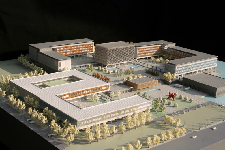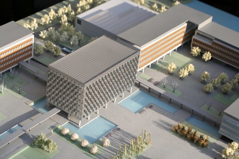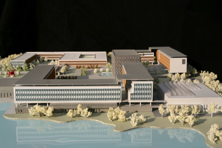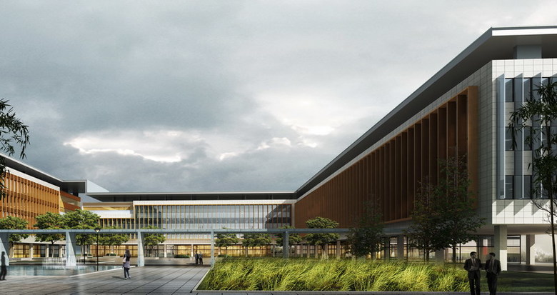 This project assignment included the development of administrative quarters as well as a citizen and enterprise service center for the Donghu New Economy and Technology Development Zone. The site is located at a scenic hillside covered with vegetation and punctuated by lakes. In order to be fully integrated into the natural surroundings, the Donghu Civic Center is designed not as a single building, but as a campus: permeable and fragmented in response to topographical and programmatic requirements. The most important principle governing the overall design is the primacy of open space over individual buildings. The buildings are arrayed around the plaza for functional adjacency and to encourage lively interaction. The main administrative building asserts a strong figural presence, affirming its role as the construction’s symbolic heart. The extensive garden landscape and the walkways are intended to affirm three primordial values: communication, team work and social and ecological responsibility.