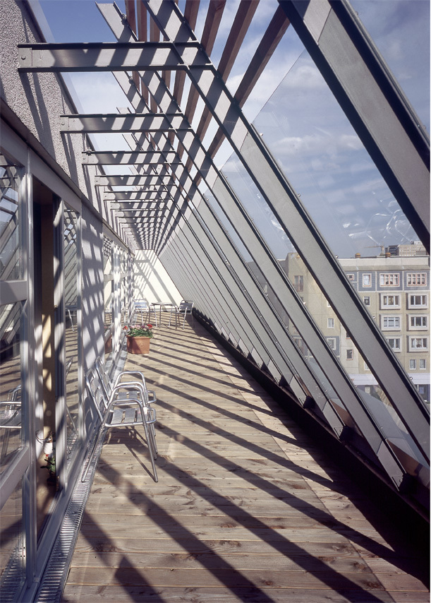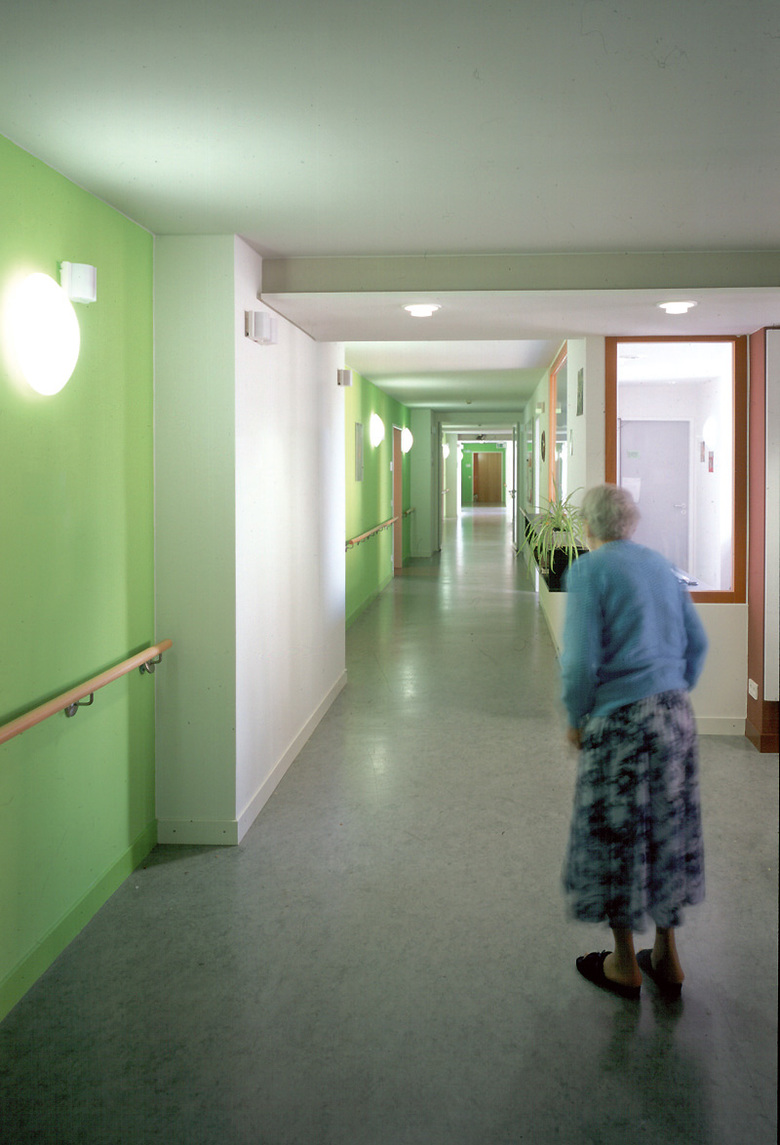 Die Altenpflegeeinrichtung an der Seeburgstraße in Leipzig liegt am Innenstadtring unweit des Gewandhauses, in einer Brachfläche mit Bruchstücken der Kriegszerstörung und des stereotypen Plattenbaus der ehemaligen DDR . Der städtebauliche Entwurf zielt auf eine Rekonstruktion der Stadt des 19. Jahrhunderts mit Blockrandbebauungen und gefassten Straßenräumen. In der Altenpflegeeinrichtung leben über 100 Menschen, weitere 50 ältere Menschen werden ambulant betreut. Demensprechend gliedert sich die große Baumasse in drei Teile, um sowohl im städtebaulichen Gefüge als auch in der inneren Orientierung eine maßstäbliche Strukturierung zu erreichen. Diese Dreigliederung ist Taktgeber für alle strukturellen Entwurfsentscheidungen. Zwei Sonderelemente verknüpfen sich mit Geschichten der Stadt und der Bewohner. Die Vorschrift der sogenannten „Leipziger Mansarde“, eine Anlehnung an die Pariser Mansarde wird als lichtdurchfluteter Aufenthaltsbereich im Dachgeschoss interpretiert. Die Sehnsüchte der älteren Bewohner nach Masurischen Landschaften, die in Gesprächen immer wieder zum Thema wurden, spiegeln sich in Motiven von Birkenwäldern, die überall im Haus gestalterisch umgesetzt werdn konnten.