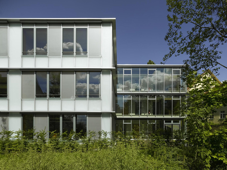 Das Büro- und Seminargebäude der Studiengänge „Vertriebsmanagement“, „Textilmanagement“, „Digitale Medien“ und „Finanzdienstleistungen“ wird von der Weinbergstraße aus erschlossen und bildet zusammen mit den Einrichtungen der Berufsakademie „Im Klösterle“ und den benachbarten Schulen ein öffentliches Umfeld. Die Zu- und Ausfahrt der Tiefgarage erfolgt über die benachbarte Rudolfstraße. Über ein zentrales Foyer mit Halle an der Flurzone sind über einen alle Geschosse verbindenden Aufzug und zwei abgeschlossene Treppenhäuser die Seminar-, Büro- und Nebenbereiche zu erreichen.