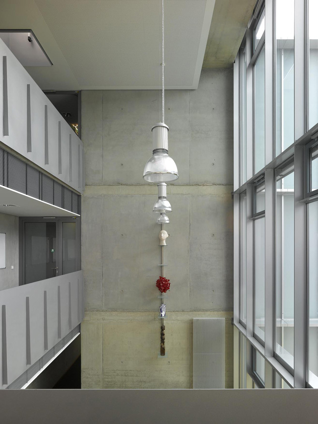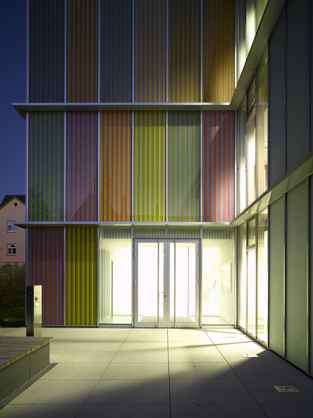 Von besonderer Bedeutung ist die Symbiose von Fassadentechnologie und Bildender Kunst. Über dem Eingangsbereich wurden einige Flächen von der Künstlerin Saskia Schulz gestaltet. Der Übergang zwischen Architektur und Kunst ist fließend. Insgesamt ist der Neubau der Berufsakademie in Ravensburg ein integrativer Stadtbaustein von hohem Erkennungswert. Architektur und Alleinstellungsmerkmal der Berufsakademie führen an dieser Stelle zusammen.