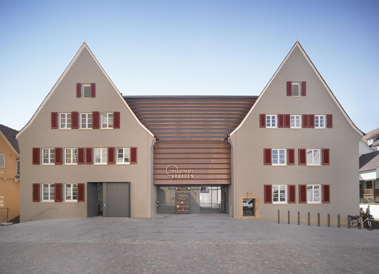 Das Arkadengebäude wurde zu Beginn der 1930er Jahre fertiggestellt und zuletzt in den 1980er Jahren umgebaut. Es liegt zwischen dem historischen Rathaus und der Stadtkirche, direkt am historischen Marktplatz von Bietigheim, in einem denkmalgeschützten Kontext. Das ursprünglich U-förmige Gebäude bestand aus mehreren Gebäudeteilen, die einen offenen Innenhof ausbildeten, der sich im Norden zur Kirche öffnet. Das Arkadengebäude wurde hauptsächlich von der Stadtverwaltung genutzt. Um moderne, hochwertige Verkaufsräume an einem zentralen Standort einzurichten war es erforderlich das Gebäude im Erdgeschoss und 1. Obergeschoss zu entkernen.