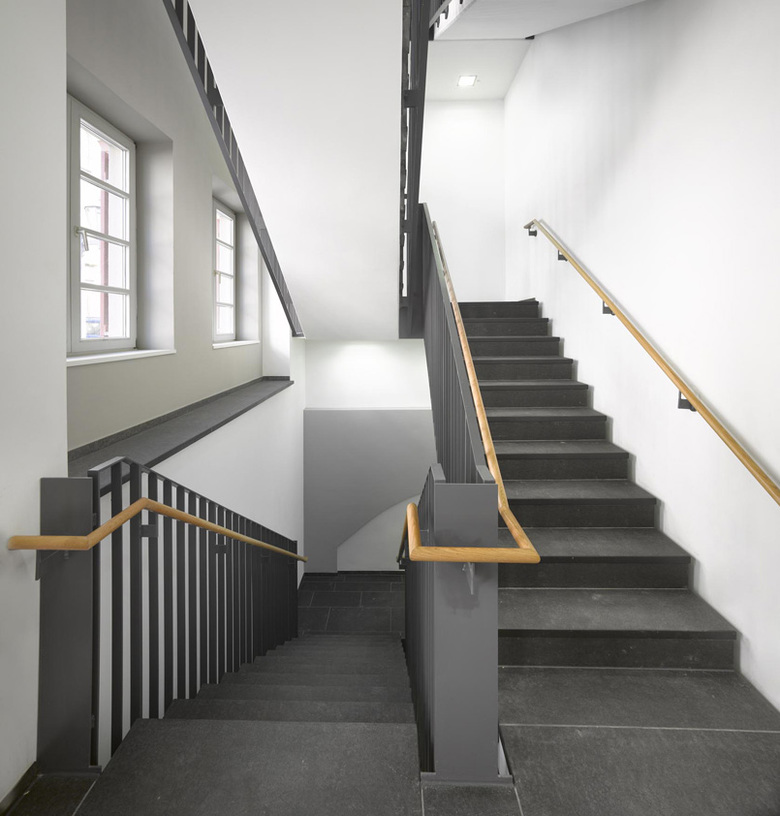 Neue Bauteile und Eingriffe in den Bestand wurden zurückhaltend behandelt um das Gesamterscheinungsbild des Gebäudes im historischen Kontext nicht zu stören. Das Thema Kupfer wird variierenden eingesetzt, begleitet die neuen Zugänge und die öffentliche Passage und markiert die neue Nutzung des Gebäudes im öffentlichen Raum.
