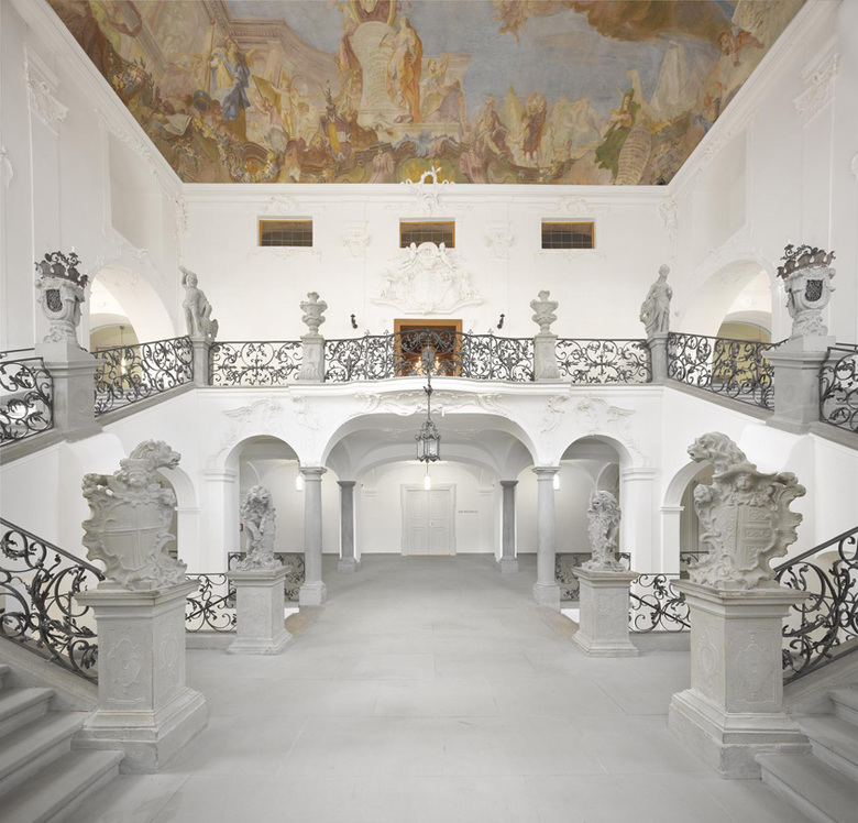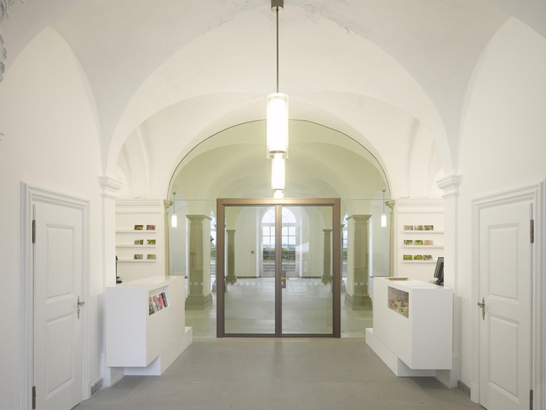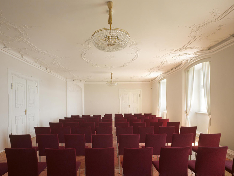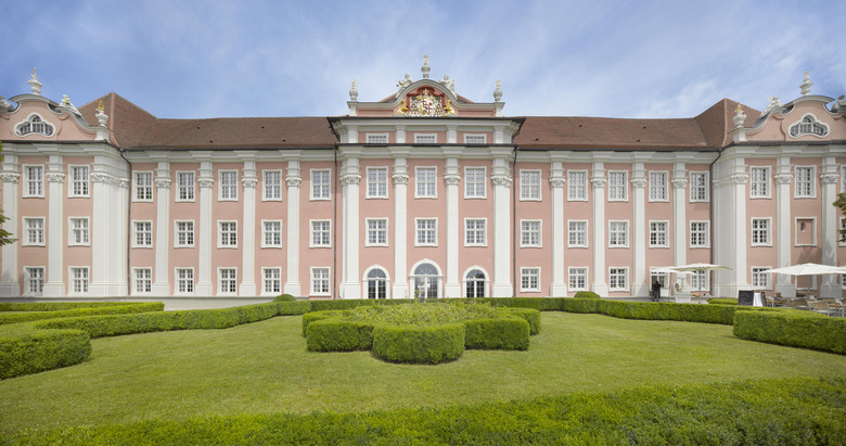 Das Neue Schloss Meersburg liegt am größten Platz der Stadt, die durch ihre mittelalterliche Struktur geprägt ist. Von der Seeseite aus betrachtet, fügt sich das historisch bedeutende Bauwerk in das Ensemble aus Staatsweingut, Internat und der Meersburg ein. Der Meersburger Schloßplatz wird für verschiedene Großveranstaltungen genutzt. Die dem Platz abgewandte Seeterrasse des Schlosses bietet einen grandiosen Blick auf den Bodensee und das Alpenpanorama. Durch die Öffnung des Vestibüls zum See hin und eine beidseitige, barrierefreie Erschließung werden Platz- und Seeseite miteinander verbunden, so dass Veranstaltungen nun zu beiden Seiten des Schlosses organisiert werden können. Die Räumlichkeiten im Innern des Neuen Schlosses werden ihrer Nutzung entsprechend klar zoniert: Alle repräsentativen Räume wie Ausstellungs- und Tagungsräume orientieren sich zur Seeseite hin, während die dienenden Funktionen wie Erschließung, Küchen, Lager und Sanitärräume in Richtung Schlossplatz angeordnet sind. Der Vorteil dadurch: Das große Potential des Neuen Schlosses für Ausstellungen und Veranstaltungen, die von kleineren Tagungen bis zum großen Staatsempfang reichen, kann wesentlich besser genutzt werden. In der ersten Etage können Konferenzen mit Bewirtung stattfinden, ohne dass der Museumsbetrieb beeinträchtigt wird. Im musealen Bereich ist eine didaktische Ausstellung vorgesehen. Hier wird eine Doppelnutzung bewusst vermieden. Die Räume sind ihrer Nutzung entsprechend mit perfekter Beleuchtung und Medientechnik ausgestattet und tragen so den besonderen Anforderungen an Belichtung und Bauphysik Rechnung. Das Erdgeschoss beherbergt das Café. Um die Verbindung zwischen Platz und Seeterrasse zu betonen, wird das Vestibül frei gehalten. In den Abendstunden – nach Schließung des Museums – sind hier festliche, private Veranstaltungen möglich. Auch könnte in einem weiteren Planungsschritt das Teehaus für Sommerveranstaltungen gerüstet werden.