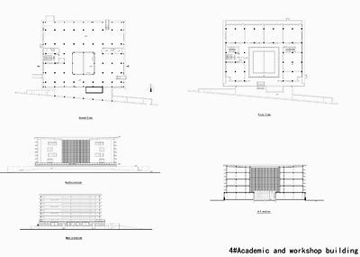 composed of ten buildings, including a library, a gallery, a small stadium, a workshop tower, six academic and workshop buildings, two traditional style bridges cross the river, two hillside art studio.