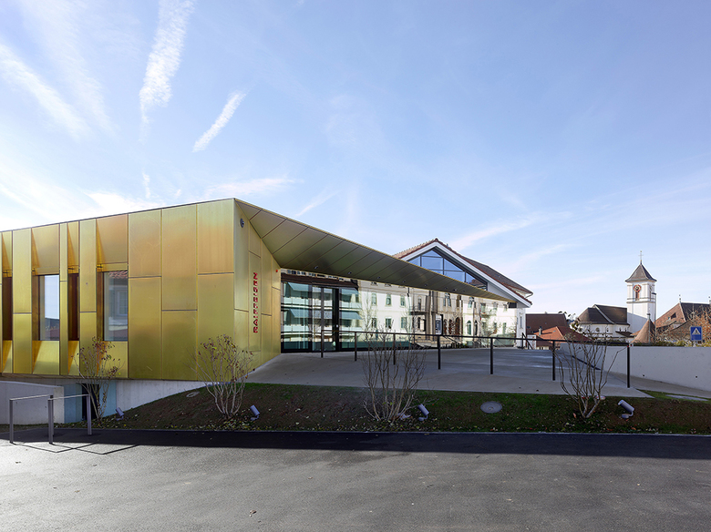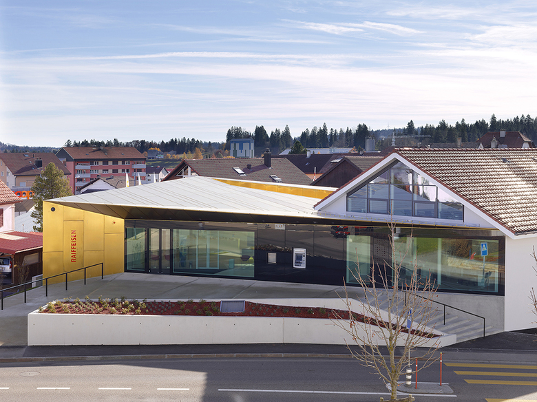 La volonté est de marier le bâtiment existant avec l’extension pour créer une unité d’ensemble judicieux avec un langage architectural contemporaine. La Banque Raiffeisen reçoit un nouveau visage.