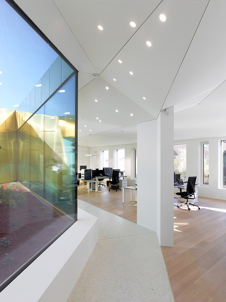 La cour intérieure, le coeur du bâtiment, articule l’espace et sépare de manière naturelle les zones de fonctionnement avec leurs différents degrés de privacité.