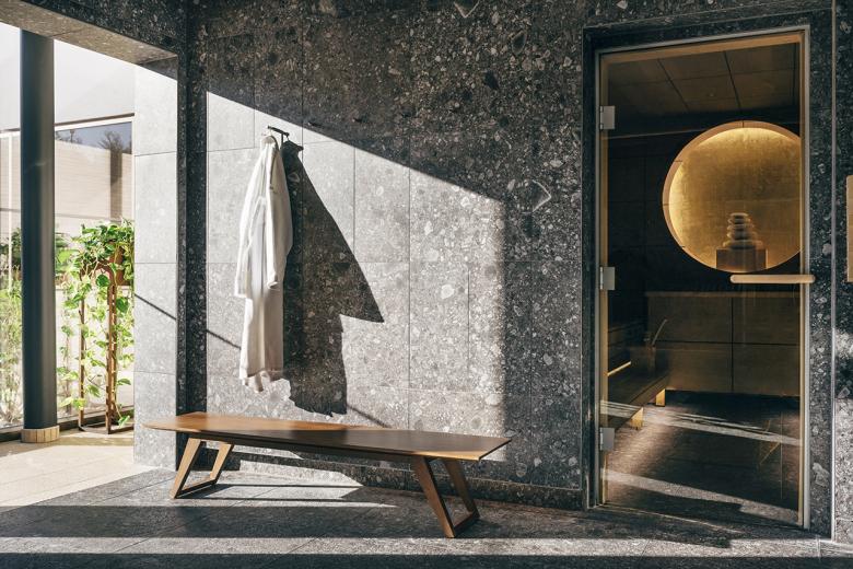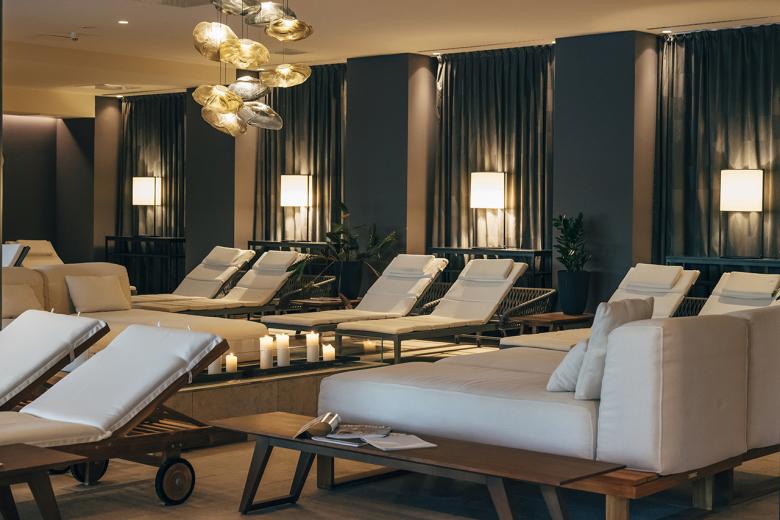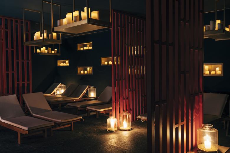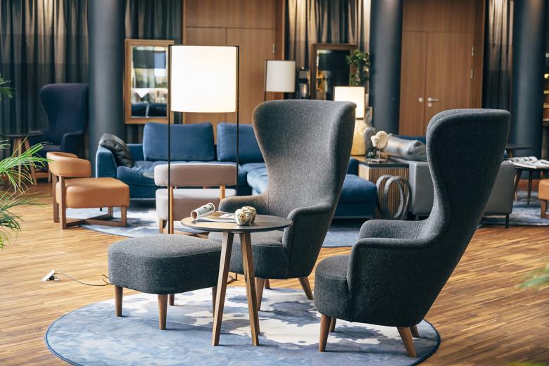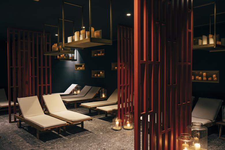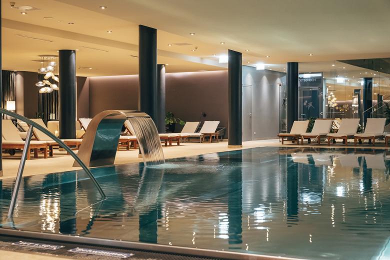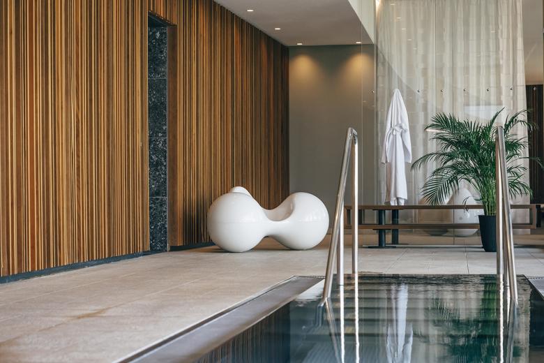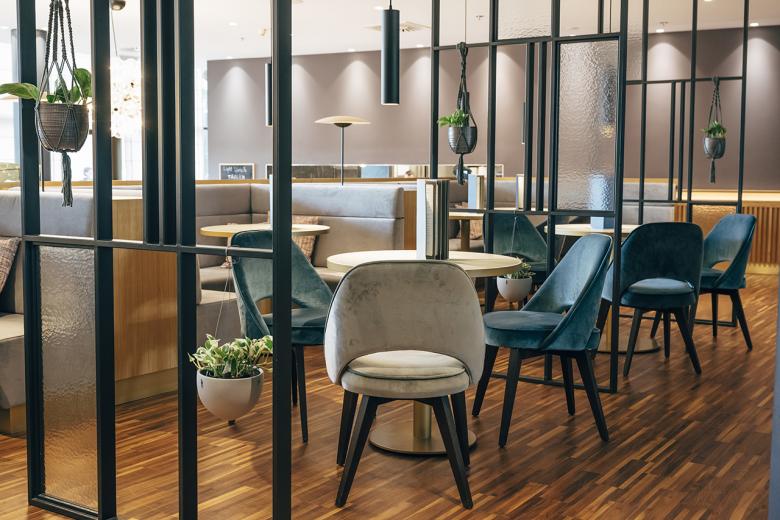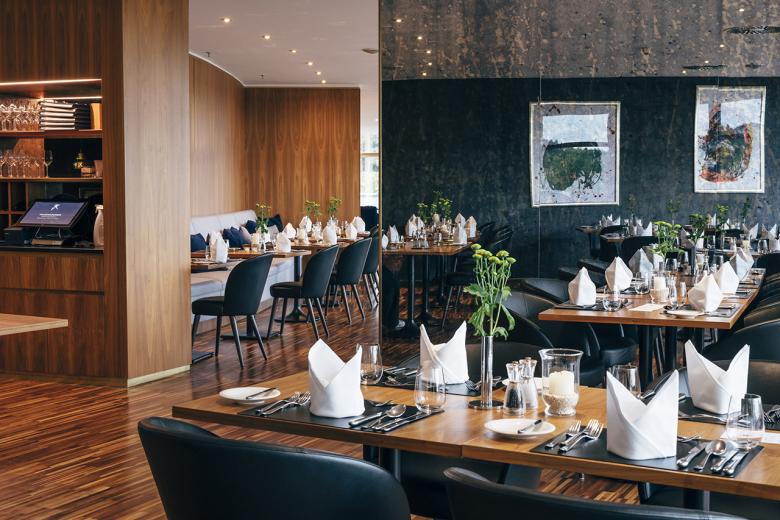 Previously located underground, the completely glazed and light-flooded outdoor sauna now forms one level with the whirlpool. The bright bistro, which has two large garden terraces, was also enlarged. The atrium, which has also been redesigned, is a living room, bar and library all in one. A wide staircase leads from here to the restaurant area, where discreet restructuring has created not only more space but also intimate areas with cosy velvet benches.