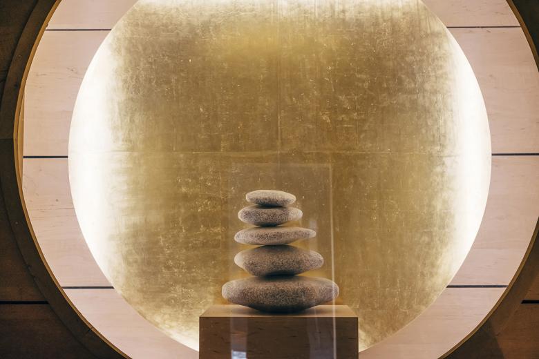 The 2017 update is also based on this foundation. Those who enter this environment characterized by mindfulness come to slow down and find peace. Seen in this light, the element of life was also central to Archisphere's design: Calming blue tones meet warm sandstone colors as well as natural-looking browns, rich stone grays and the luminous gold of light.