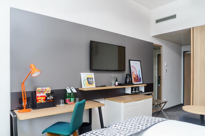 Thanks to the new Holiday Inn Vienna South, Archisphere can furnish Novum Hospitality with new perspectives in a number of different senses. The gastronomic facilities’ design is consciously aimed at not only the hotel’s guests, as it invites the people who work and live here to make use of the public areas. The lobby shares the entrance area with access to Immofinanz’s Myhive office concept and seamlessly transitions into a “third place” café that directly opens up to the mall.