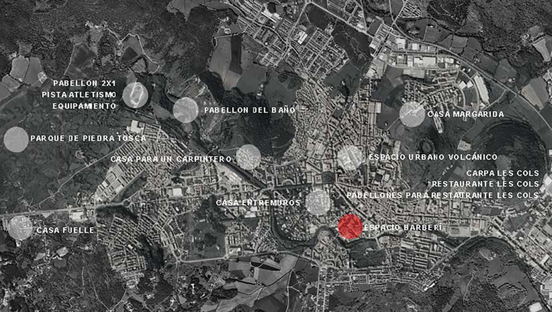 Plànol de localizació Espai Barberí i Obra de RCR (Cortesia RCR LAB·A Summer Workshop)