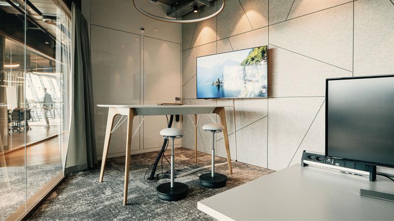 Das kollaborative Arbeiten ist für isolutions ein wichtiger Bestandteil des Arbeitsalltags. Unkonventionelle Besprechungsmöglichkeiten unterstützen unterschiedliche und individuelle Arbeitsformen und schaffen Raum für Inspiration. Für isolutions ist die digitale Welt unabdingbar; so können in den geschlossenen Besprechungsräumen auch Online-Meetings gehalten werden.