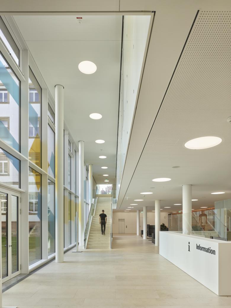Im Zusammenspiel vieler weiterer ganzheitlich durchdachter Details entsteht ein ästhetisches und nutzerfreundliches Gebäude mit menschlichem Maßstab.