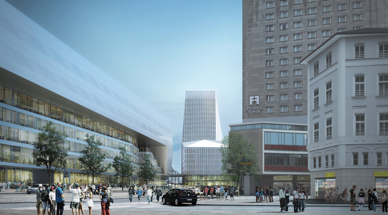 Aufbauend auf dem preisgekrönten Wettbewerbsentwurf wird neben dem neuen Empfangsgebäude des Kopfbahnhofs und in dessen neu gestalteten Umfeld das Gebäude auf dem Areal des Starnberger Flügelbahnhofs zur repräsentativen Landmarke. Es markiert, architektonisch im Kontrast zum horizontal liegenden Empfangsgebäude, den Übergang von der Innenstadt zur Weite des Gleisfeldes. Die sich auf mehreren Ebenen überlagernden Trassen der Bahn und des Münchner Nahverkehrsnetzes werden zeichenhaft inszeniert. Umfangreiche Handels- und Dienstleistungsangebote sind auf mehreren Ebenen ober- und unterirdisch angeordnet. Büroflächen belegen den Hochpunkt ab Ebene E+2 und den Flügelbau entlang der Arnulfstraße