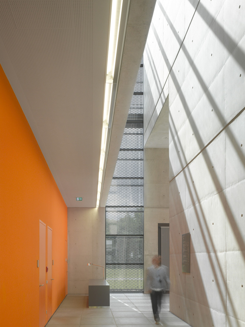 Das neue Betriebszentrum der Landeshauptstadt München soll als technische Infrastruktureinrichtung in seiner funktionalen Gliederung, sowie in seiner Gestaltung beispielgebend für einen Industriebau stehen. Zwei parallele Gebäuderiegel, als kalter und warmer Gebäudeteil ausgeführt, definieren einen durchgehenden glasüberdeckten Hallenraum. Eine Hülle aus perforiertem Leichtmetall fasst die unterschiedlichen Funktionseinheiten zu einem Bauwerk das Offenheit, Dynamik und Wandelbarkeit ausstrahlt. Der Eingang liegt im südöstlichen Riegel und erschließt die Verkehrsleitzentrale, den Verwaltungsbereich mit Besprechungsräumen, die Cafeteria und Werkstätten. Die Parkdecks für Dienst- und Mitarbeiterfahrzeuge sowie die Lagerräume liegen gegenüber im unbeheizten Gebäudeteil. Der glasüberdeckte Hallenraum dazwischen, die sogenannte „Magistrale“ dient dem Be- und Entladen; zwei Stege verbinden die Obergeschosse auf dem kürzesten Weg miteinander. Die Verwendung industriebautypischer, robuster Materialien und Halbzeuge wie Streckmetall, Blech, Glas und Beton werden dem Zweck des Gebäudes als Nutzbau gerecht.