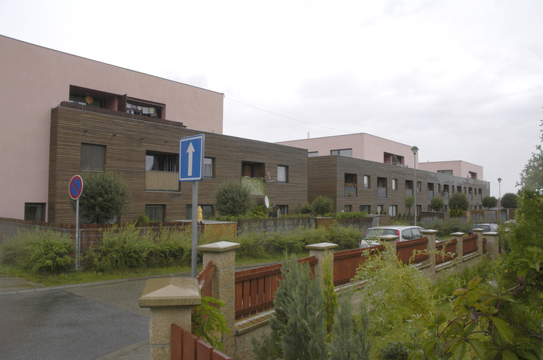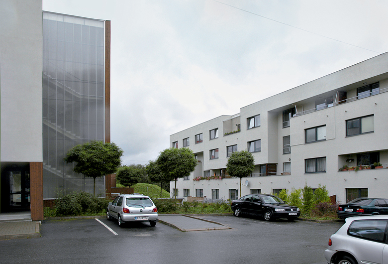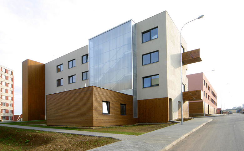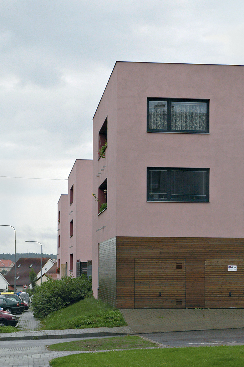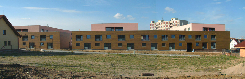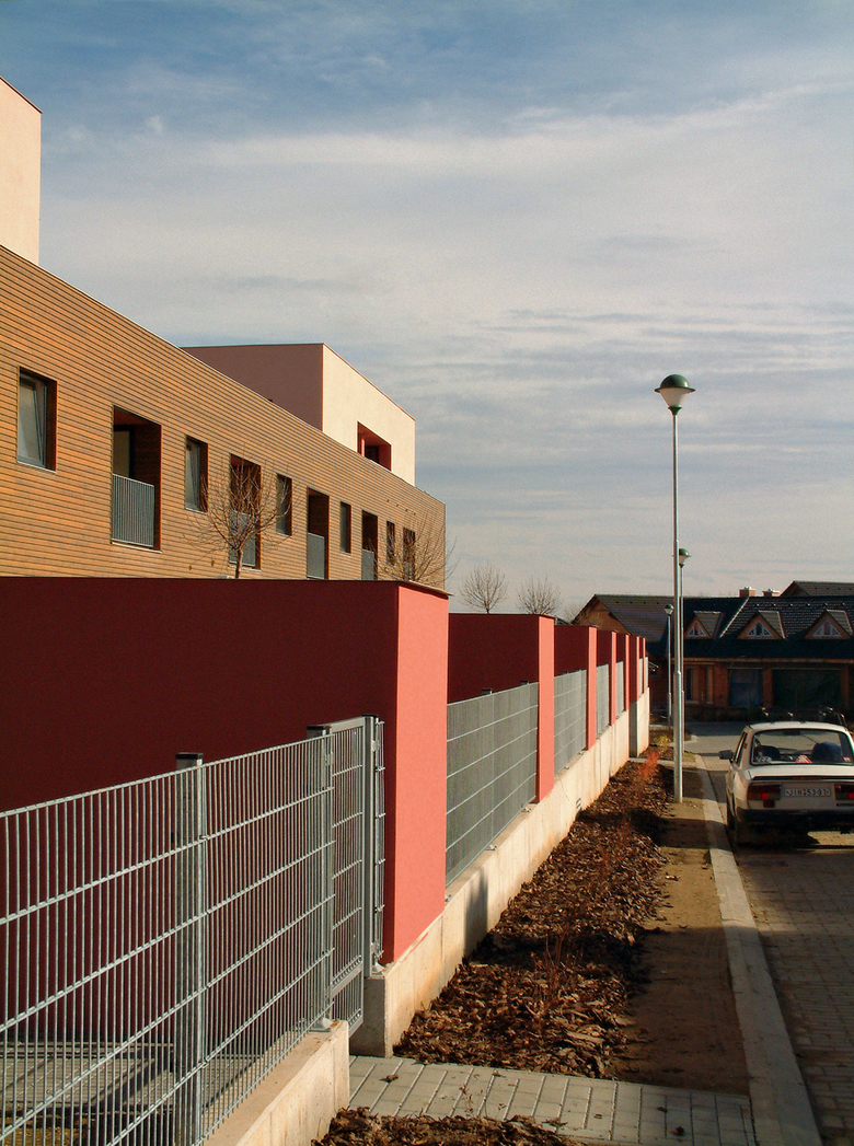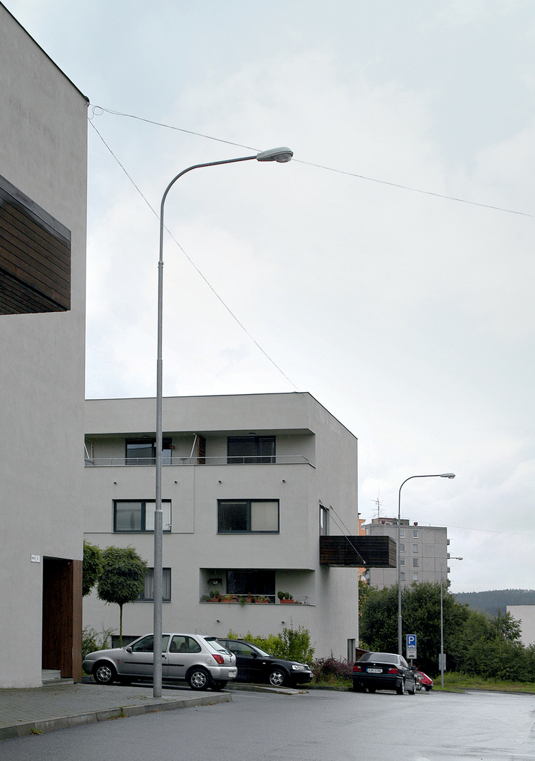 Price-accessible flats in Vrchovina should also be acceptable for inhabitants of a smaller town‘s outskirts where building a small family house is quite cheap. This took us to reasoning how the value of individual housing may be joined with living in a residential house. The main theme of a group of five residential houses thus becomes the account over what a residential house may offer to its user compared with a family house and, on the contrary, which advantages of individual housing could offer a residential house. Searching for proportions of a house, semi-closed areas, borders of the public and private space.