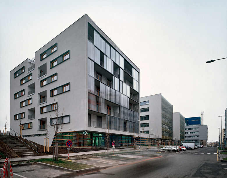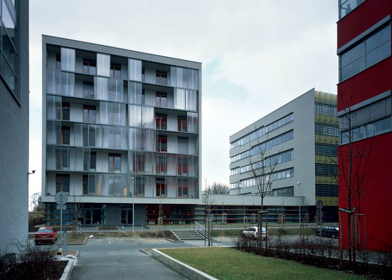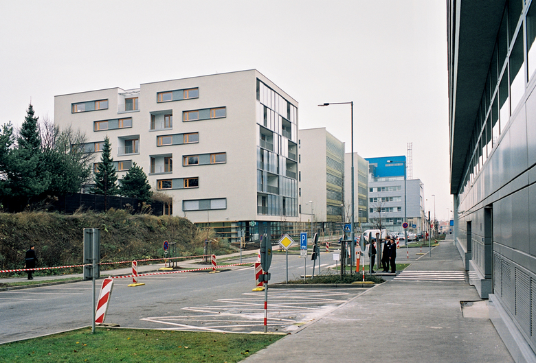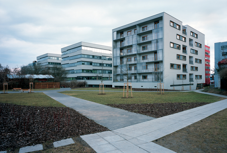 BBC Residence and Office Park are the ‘second stratum‘ of the extension and revitalisation of the urban character of a non-urban environment within the area disintegrated by the highway (5. května street). Houses located in the second line behind are protected from the direct effects of main roads; they have operable windows, residential housing may be built here. The volumes‘ scale becomes smaller towards the original development in Baarova (street); a rather generous park is built together with the house here.