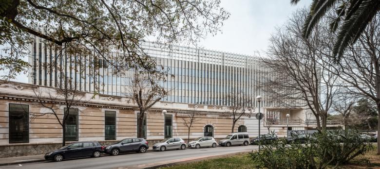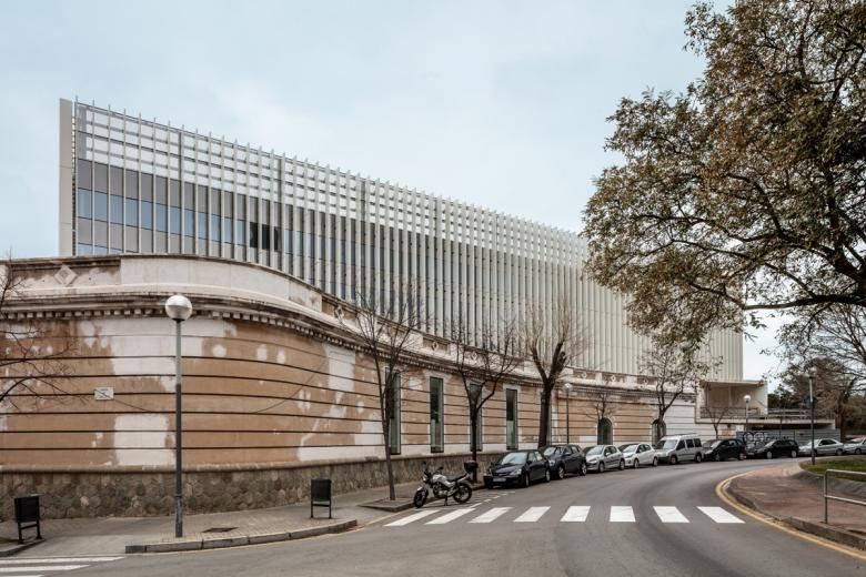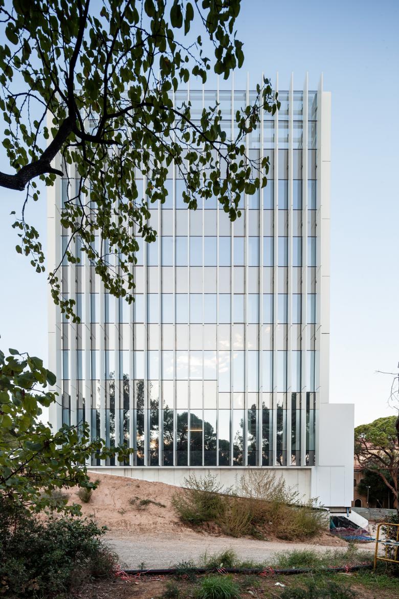 The concept is to visually locate a single longitudinal block which is placed to respect the existing wall. A new entrance from Plaza Eusebi Güell is created, giving continuity to public space and becoming the main access to the building.The building emerges as a single piece and contain the programme's three large blocks: above grade, the block housing the departments of research, operations, management_txt as well as ground-floor facilities; below grade, the partially underground home to the supercomputer; and the basement, which is earmarked for facilities and parking. Besides these three spaces, a fourth block contains the main lobby and training/conference rooms and which acts as a link between the different parts of the programme.
