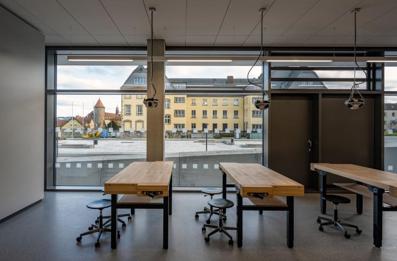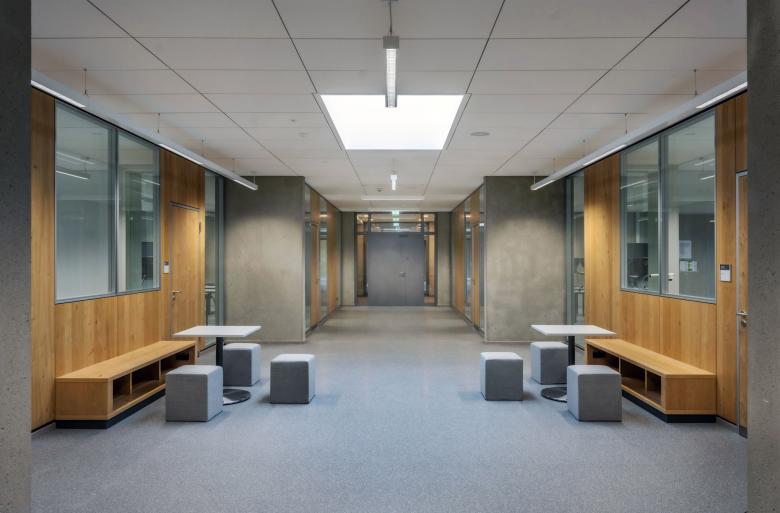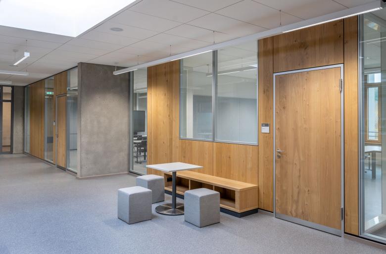 Das Lernhauskonzept bietet mehrere Möglichkeiten für zeitgemäße Lernkultur. Zentrum ist die jeweilige gemeinsame Mitte mit Möglichkeiten zur Begegnung und Austausch. Diese erweiterten Flächen der Klassenraumzone
