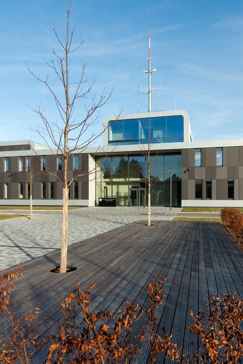 Auf dem nördlich von München gelegenen Flugplatzgelände - einem der ältesten Flugplätze Deutschlands - sollen die Hubschrauberstaffeln von Bundes- und Landespolizei zukünftig gemeinsam untergebracht werden. In dem realisierten ersten Bauabschnitt wurden die bestehenden Gebäude der Bundespolizei durch einen Neubau ersetzt.