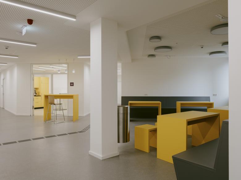 Neben den Labor- und Büroflächen des geographischen Instituts der Christian-Albrechts-Universität zu Kiel beherbergt der 5-stöckige Neubau in den ersten beiden Geschossen einen modernen Seminarbereich, mit studentischen Arbeitsflächen, der einer universitätsinternen Öffentlichkeit zur Verfügung steht.