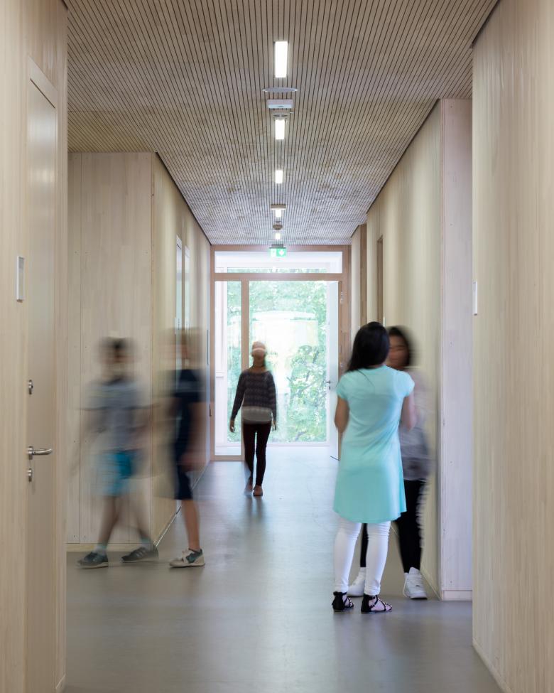Nach Abschluss der Neuentwicklung des Schulcampus kann der Interimsbau ohne hohen Aufwand wieder demontiert und in seine elementierten Einzelteile zerlegt werden. Nahezu alle Elemente können wiederverwertet werden, auf verputzte Bauteile wurde konsequent verzichtet.