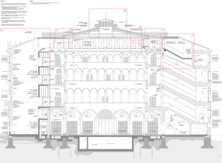 This principle becomes evident when in 2013 taking on the task of the detail design of OMA's concept for restoration of the Fondaco dei Tedeschi in Venice and its conversion to a Mall. Here the subjects/objects involved were multiple: the building with its history made up itself of a series of overlapping and transformations; the new owners of the Palazzo, Edizione property group (Benetton family); the DFS, tenant of the building aiming to achieve an ultra-luxury shopping center. C+S had the most delicate task of all: traslate all the expectations into buildable and sophisticated detail design nodes in balance with the fragile context of the Venetian context. By assuming the role of translators in the sense of the term, Carlo and Maria Alessandra built a bridge between establishing a fruitful exchange dialogue, and the body for the protection of cultural heritage.