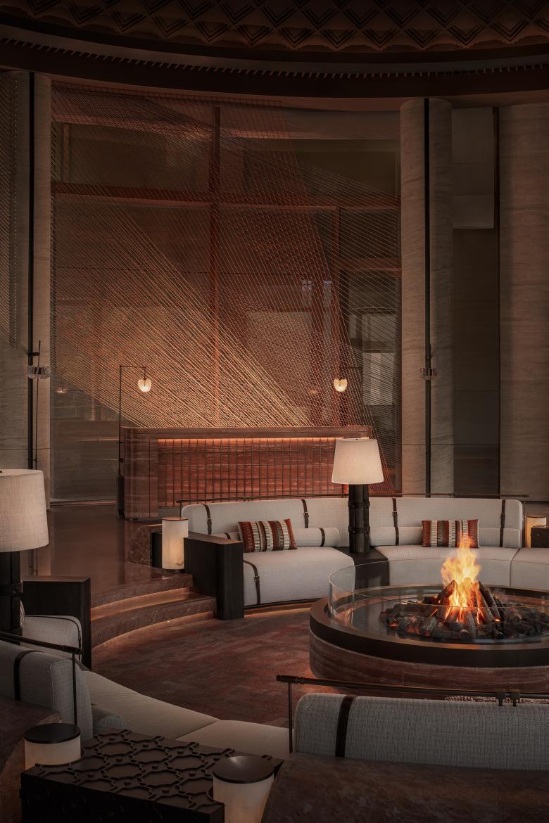 In nomadic culture, the hearth is the heart of the home—a source of warmth, light, nourishment, and shared stories. Here, the traditional fire pit is reimagined as a modern fireplace installation and spatial centerpiece. Seating around it evokes the sense of courtyard gatherings on the grasslands, where nomadic families and friends gather in shared warmth. Whether sitting alone with a book or engaging in a quiet conversation, guests feel a grounded calm in the gentle embrace of the steppe.