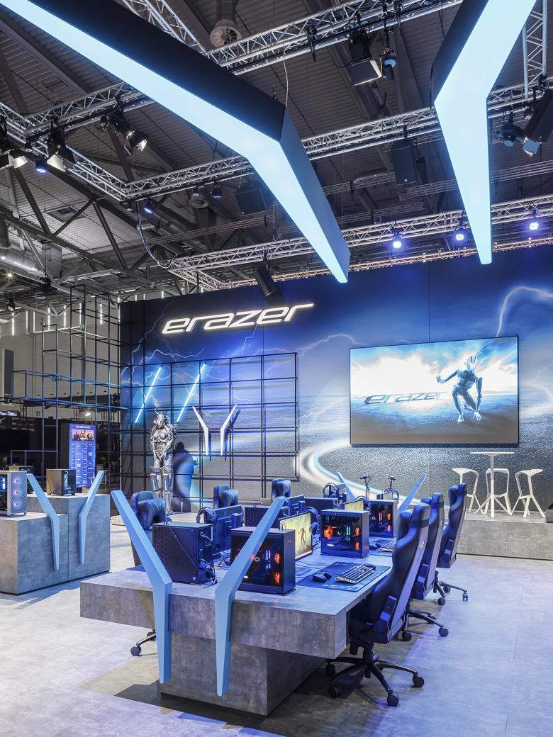 Die Themenwelten Technik, Games und Innovation begegnen sich auf der Standfläche und ermöglichen den Besuchern ERAZER als Marke für High-End-Performances und High-End-Gaming kennenzulernen. Die einfache Zugänglichkeit und die diversen Interaktionsmöglichkeiten schaffen positive Erfahrungen mit den Produkten. Das Gesamterlebnis, von der Markenwahrnehmung bis zu den spielerischen Touchpoints, bietet dem Messepublikum Einblicke in Potentiale von ERAZER.