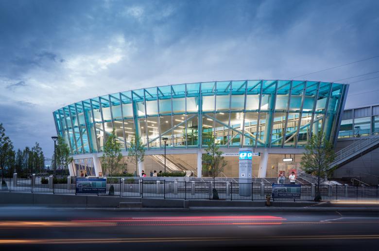 To enhance the customer experience and provide the level of service this growing area needed, PANYNJ commissioned the design and construction of this modern station. The station features best-in-class amenities, glass-enclosed weather-protected station entrances, modern elevators, widened stairs, new escalators, and new platforms—significantly enhancing public access to the elevated railway.