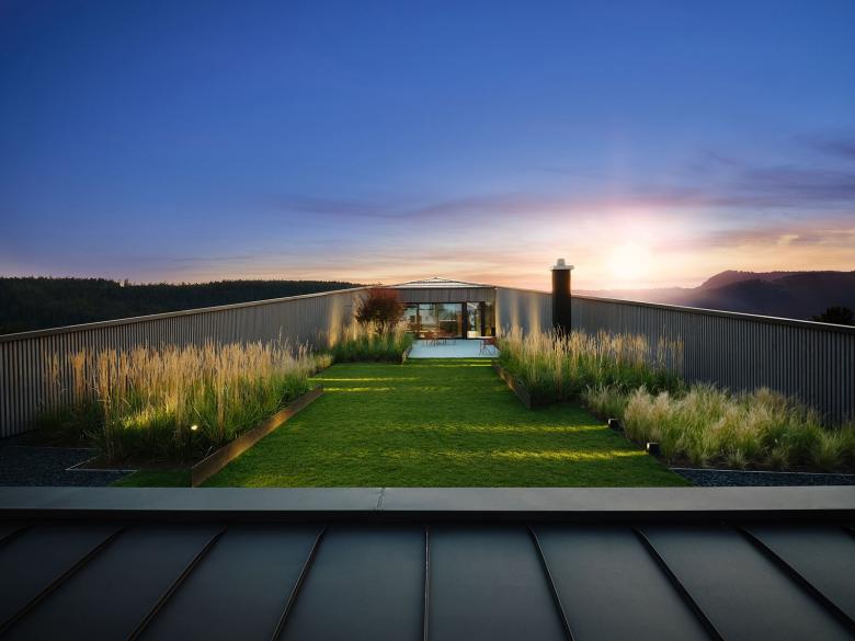 Die Schaffung eines Wohlfühl-Ambientes für die Mitarbeiter war w:architekten besonders wichtig, denn sie sind von der motivierenden Kraft einer solchen Umgebung, die letztlich den Erfolg eines Unternehmens beflügelt, überzeugt. Gleichzeitig konnten die auf Gewerbe- und Verwaltungsbau fokussierten Architekten ein repräsentatives Objekt erschaffen, das auch potenziellen Bauherren Einblick in das Konzept offener Strukturen als wesentliches Organisations- und Gestaltungsmerkmal des Architekturbüros bietet. Dieses freie und kommunikative Konzept, in dem Zonen für den informellen Austausch ebenso Platz haben wie Gemeinschafts- und Besprechungsräume, fördert die Kommunikation innerhalb der Teams und bietet mit vier diskreten, insgesamt dunkel gehaltenen Zonen gleichzeitig Platz zum Rückzug. So kann sich jeder Mitarbeiter, je nach Anforderung seiner aktuellen Tätigkeit, stets einen entsprechenden Arbeitsort suchen. Und wenn Überstunden anfallen, kann er durch den großen Glasgiebel beobachten, wie die Sonne hinter den Dächern versinkt.