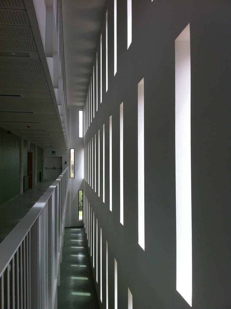 La Facultad de Veterinaria (UAB) se apoya en un gran cuerpo sinuoso adaptado a la topografía de Bellaterra que combina franjas horizontales de ventanas continuas con las franjas de terracota. Este cuerpo de aulas recoge y organiza el resto de dependencias que se extienden por el terreno y se vinculan en espina con el cuerpo principal. El edificio original, del 1987, obra seleccionada a los premios FAD 1989, se amplió el 2012.
