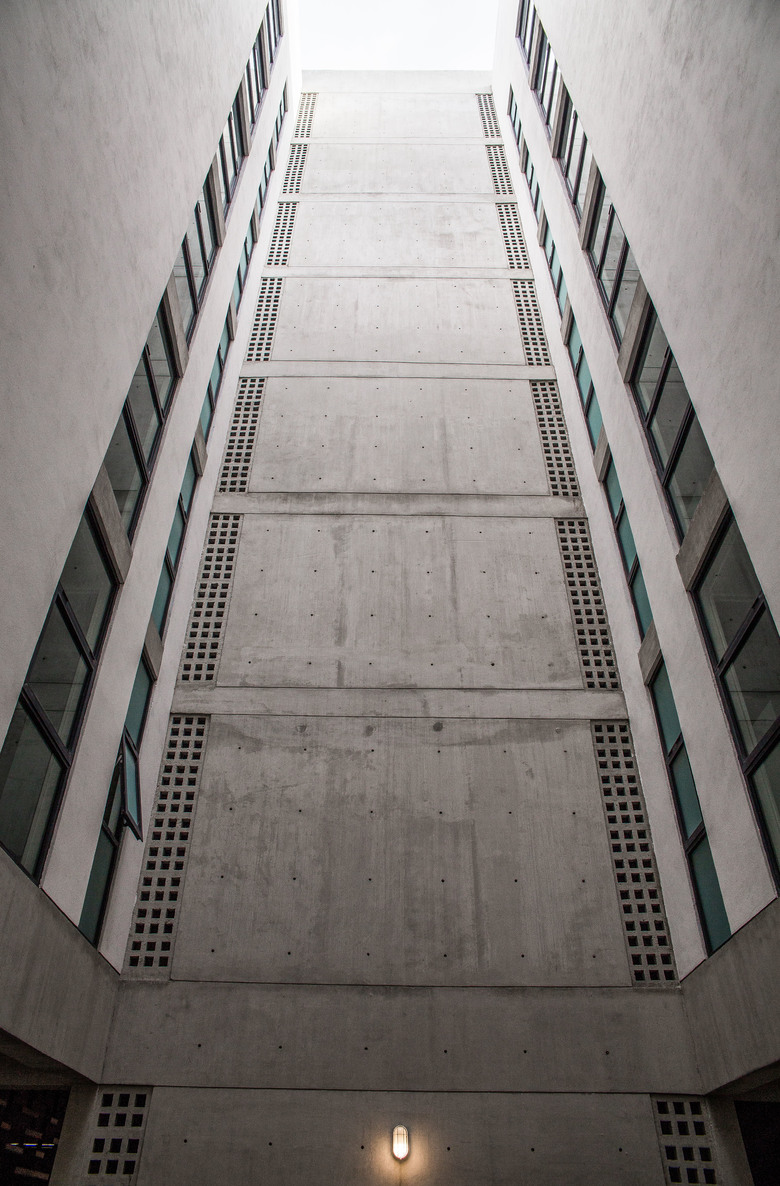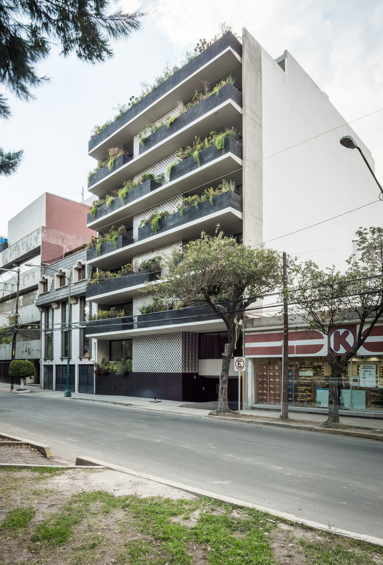 El volumen de características rectangulares se plantea a partir de un esquema muy sencillo en el que las áreas sociales de los departamentos se orientan hacia el frente (nor-oriente) y las de intimidad hacia un patio de iluminación al interior del edificio y la parte posterior del terreno (nor-poniente).