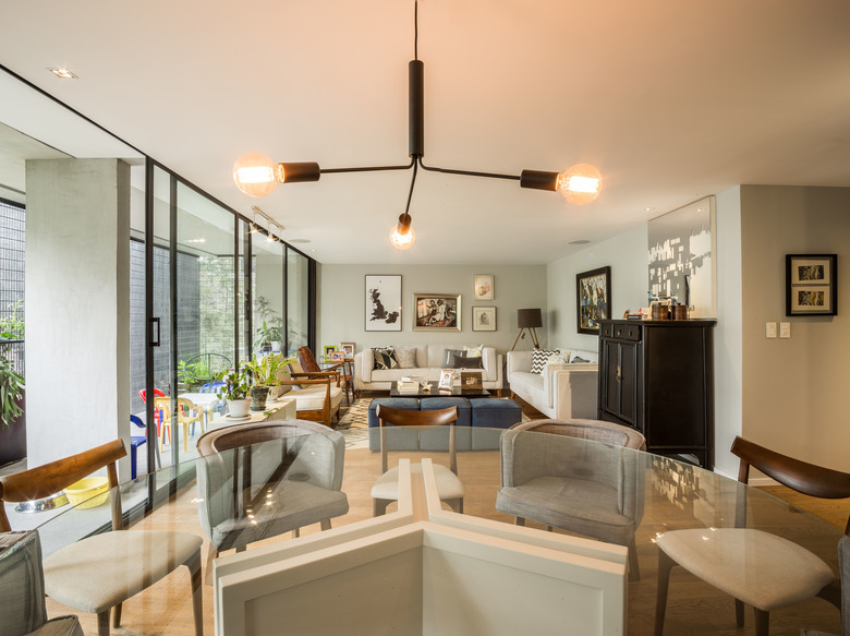 La solución del programa arquitectónico unifica 3 recámaras con baño y vestidor cada una, estancia, comedor, sala de tv, cocina, cuarto de lavado en espacios de entre 154.45 m2 y 221.51 m2. La idea de diseñar un estacionamiento “subterráneo” sin generar grandes volúmenes de excavación obligó que el acceso principal se elevará 1.40 m con relación al nivel de banqueta por medio de una escalinata, la cual desemboca en un amplio lobby en el que la combinación de madera, vidrio y materiales pétreos en tonos grises y blancos se hacen presentes. Siguiendo este diagrama, el primer departamento se ligó a la planta de acceso produciendo que la vivienda se viera reducida en su área social sin embargo se logró compensar a través de la creación de un deck descubierto en la parte posterior del terreno y un patio interior en el corazón del edificio.